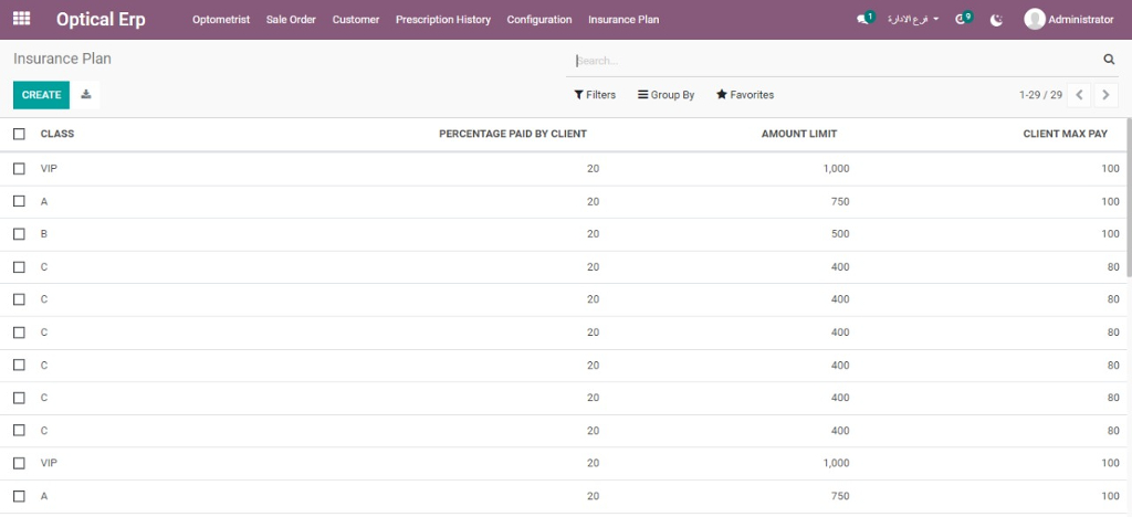 Odoo is a system that suits the needs of medical service workers to provide safe services to their patients, as we offer you the optics application that includes everything you need to manage your center, starting from creating a file for each client containing personal data, contact data, eyeglass sizes, medical statements and choosing the insurance company if any, To issue electronic invoices containing QR code, with superior inventory organization, facilitating stock movements, and ability to track inventory with serial number and expiration date.